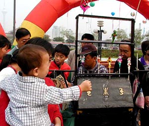 看着一个个精巧的小面人被做出来,这个小朋友忍不住想去拿一个。