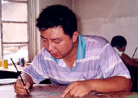 岳鸿柱,王强二人自幼爱好书画,对名家作品更具极大兴趣和欣赏力。二人近年来通过无数次地研究和实验,终于成功地研制出立体牛皮雕画。它将传世名画精心镌刻在珍贵的牛皮上,使其能够永久珍藏。