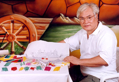 以龙船为例,作者在翻阅大量的资料后充分运用了绘图、裁、剪、粘、搓、卷、画、刷等工序,并经过三百多项手工过程制作出了风格独特,赏心悦目的作品。