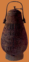 北单卣 1950年 河南安阳武官村 出土,盛酒器, 商代后期 高28.1 厘米,口径7.3 厘米,中国历史 博物馆藏。