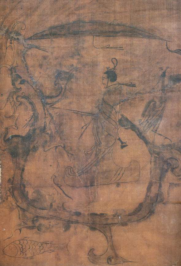 最能代表战国时期绘画艺术成就的遗物,湖南省长沙出土的《美女龙凤图》、《人物御龙图》帛画。这两幅世界上最早的丝织物绘画均是随葬的“铭旌”,具有送死者灵魂升天的含意,表达了楚文化中简朴的道家思想。